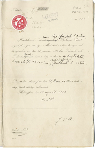 - "Rotor", finski patent FI000000011121A, 10. travnja 1926.