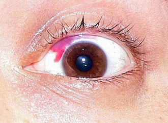 Subkonjunktivalno krvarenje kod novorođenčadi može biti povezano sa skorbutom (nedostatkom vitamina C), zlostavljanjem ili sindromom traumatske asfiksije.