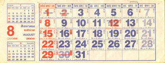 • Thai calendar for August 2004