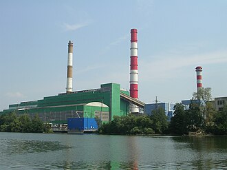 | 5. Električni generator (trofazna struja); | 14. Dovod ugljena (pokretna traka); | 23. Zagrijač vode (ekonomajzer); |
