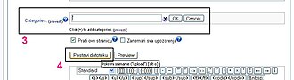 | 4. Ispuni potrebne podatke (slika B) Svakako izaberi odgovarajuću licenciju!!! Također, bilo bi dobro sliku odgovarajuće kategorizirati pritiskom na "+" na dnu obrasca (na slici C označeno brojem 3) | |