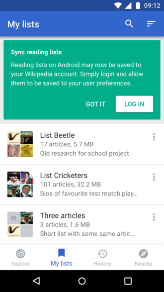 In 2016 the Android team replaced the simple Saved Pages feature with Reading Lists. Reading Lists allow users to bookmark pages into folders and for reading offline. The intent of this feature was to allow "syncing" of these lists for users with many devices. Due to overlap with the Gather feature and related community concerns, this part was put on hold.