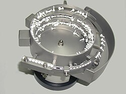 Zavojno vibracijsko prenosilo: a) pogonski mehanizam, b) zavojni žlijeb.