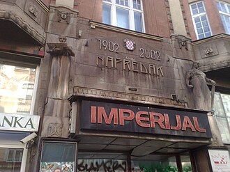 Na pročelju secesijske zgrade ističe se hrvatski grb i natpis NAPREDAK. Smatra se da je to jedna od najljepših sarajevskih građevina nastalih za vrijeme austro-ugarske vladavine. Zgrada se sastoji od triju zgrada. Prednja je trokatna monumentalna zgrada koja se nalazi do ulice, uklopljena između palača Finci i Salom (također nacionalni spomenik BiH, od 2008.[1]). U prizemlju se nalaze poslovni prostori i prolaz u dvorišni dio zgrade. Drugi dio zgrade je dvorana namijenjena kazališnim predstavama i kinu. Treći dio zgrade je stambena četverokatnica. Danas je u njoj kazalište Kamerni teatar 55 i slastičarnica. Na pročelju su dvije skulpture: Prosvjeta i Snaga, djelo Roberta Frangeša Mihanovića. Na krovu se nalazi skulptura Croatia.[2]